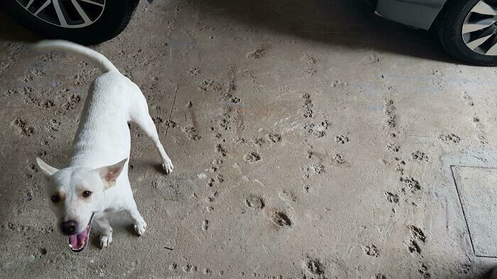 25. "В гараже моей мамы идет ремонт. Думаю, довольно очевидно, что у них 3 собаки"