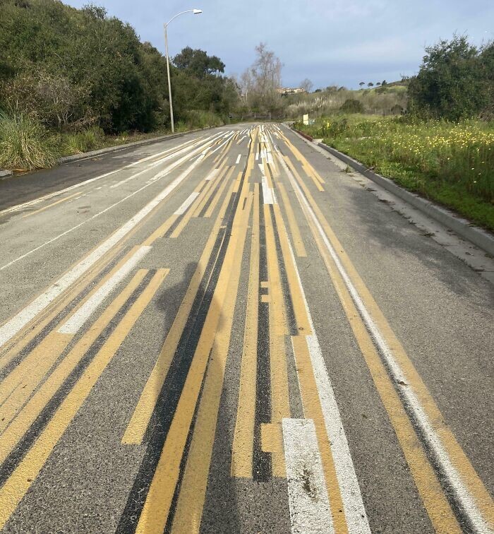 23. Дорога, на которой рабочие практикуются в рисовании разметки