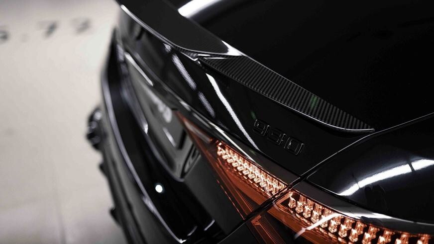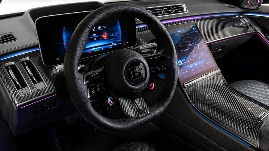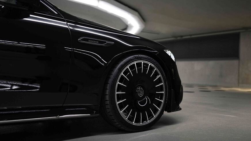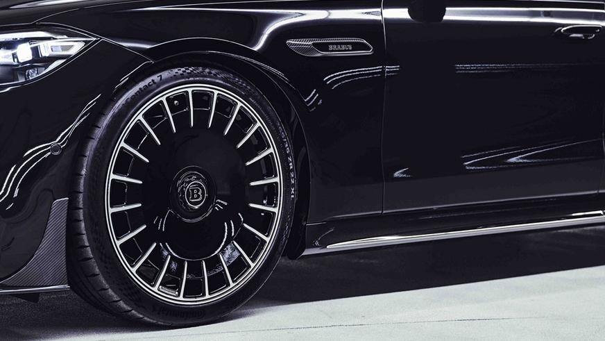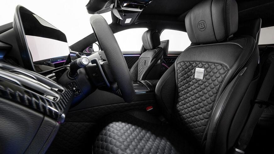 В Brabus украсили седан фирменными аэродинамическими деталями из углепластика, которые улучшают охлаждение тормозов и уменьшают подъёмную силу. Доработанный седан также отличается коваными колёсными дисками на 22 дюйма. Интерьер предлагается полностью перешивать дорогой кожей в цветах по выбору заказчика — уже представлены полностью чёрный и ярко-голубой варианты. В отделке салона используются карбоновые накладки и символы 77 — это отсылка к году основания тюнинг-ателье.