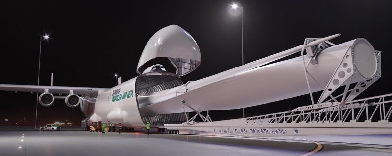 Самолётом планируется перевозит крупногабаритные лопасти для ветряков. Однако у экспертов вызывает сомнение способность построить такого гиганта.
