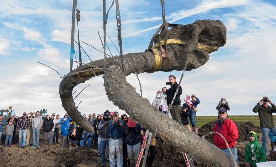 Джеймс копал несколько часов и нашел странный длинный «камень». И тут его осенило – это огромная кость! Джеймс сразу же понял, что эта кость не может принадлежать корове или быку, так как она слишком большая. Фермер сразу же помчался к соседям за помощью, ему удалось собрать целую команду «копателей».