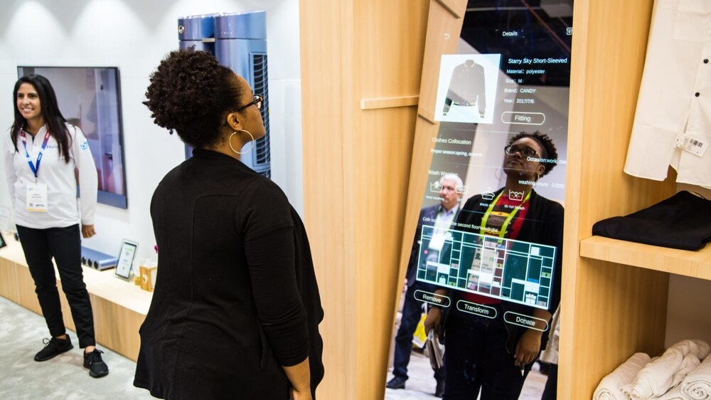 Разве вам не нравится создавать новые комплекты одежды каждое утро? Умное зеркало Haier сделает все за вас. Но только вы должны внести в базу данных все свои предметы одежды, предварительно прикрепив к ним специальный чип. Затем зеркало поможет вам составить ансамбль из существующих предметов одежды в вашем шкафу и даже дать полезные советы по стирке каждой вещи.