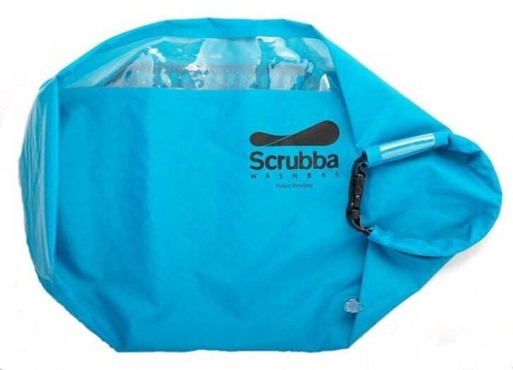 Scrubba Wash Bag - это портативная стиральная машина. Она просто необходима, когда вы отправляетесь в путешествие. Все, что вам нужно сделать, это положить одежду в указанный пакет, наполнить его водой и добавить моющее средство. Затем пакет плотно закрывается, чтобы его можно было “помассировать” и эффективно промыть.