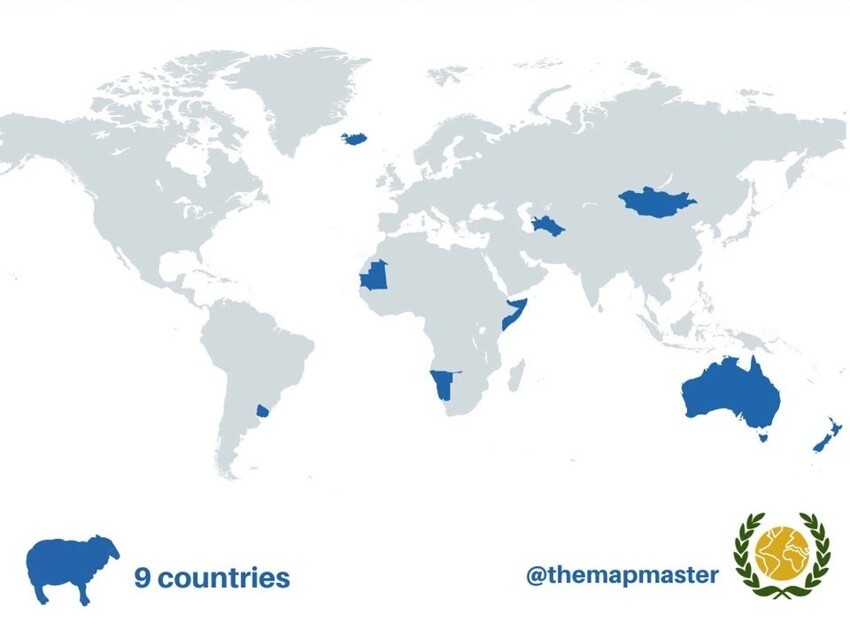 Карты существуют не только для того, чтобы подглядеть, какие реки впадают в Каспийское море или где находится Эритрея. Порой они позволяют нам взглянуть на мир под совершенно другим углом и узнать что-то неожиданное: например, в каких странах овец больше, чем людей, или какая нация считает себя самой культурной на свете. Таким картам и посвящен аккаунт "Я [очень] люблю карты" с более чем 36 тысячами подписчиков.