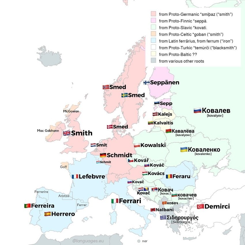 22. Фамилия "Smith" в других европейских языках