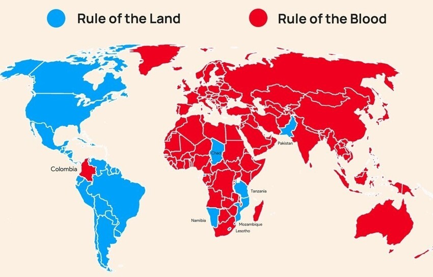 "Право земли" — принцип приобретения гражданства, согласно которому гражданство обусловлено местом рождения и не связано с гражданством родителей. Согласно "праву крови", гражданство ребенка зависит от гражданства родителей, независимо от того, на территории какого государства он родился и на территории какого государства проживают сами родители.