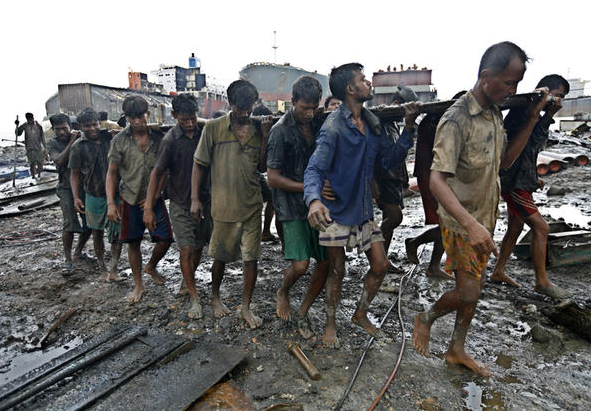 Местные поколениями раздирают по песчинке корабли. В день за 12-14 часов у них получается заработать от 1 до 4 долларов.