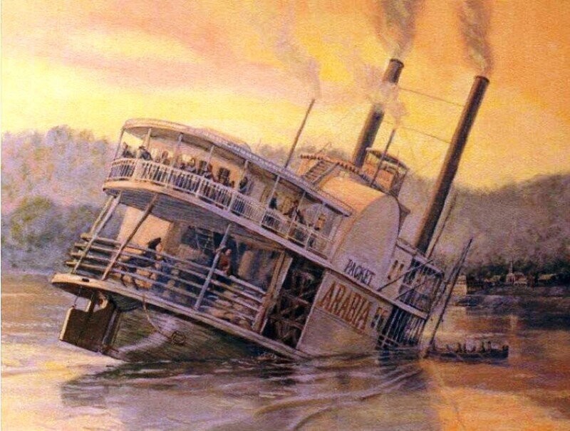Если говорить о Миссисипи, главной водной артерии США, то это сравнительно спокойная река, особенно если спуститься ниже по течению, в отличие от Миссури - второго по полноводности притока Миссисипи. Миссури очень сложная и даже опасная для навигации река. За весь 19 век тут затонул не один десяток судов и погибло множество людей. Коварные отмели, которые перемещаются из-за сильного течения, и поваленные деревья, были настоящим бичом реки. Между тем перевозки по Миссури были очень прибыльным делом. Так всего один рейс парохода во времена "Арабии" мог стоить до 15 тысяч долларов.