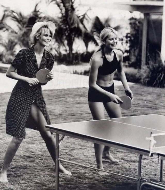 Клаудия Шиффер и Валерия Мазза играют в настольный теннис, 1995 год.