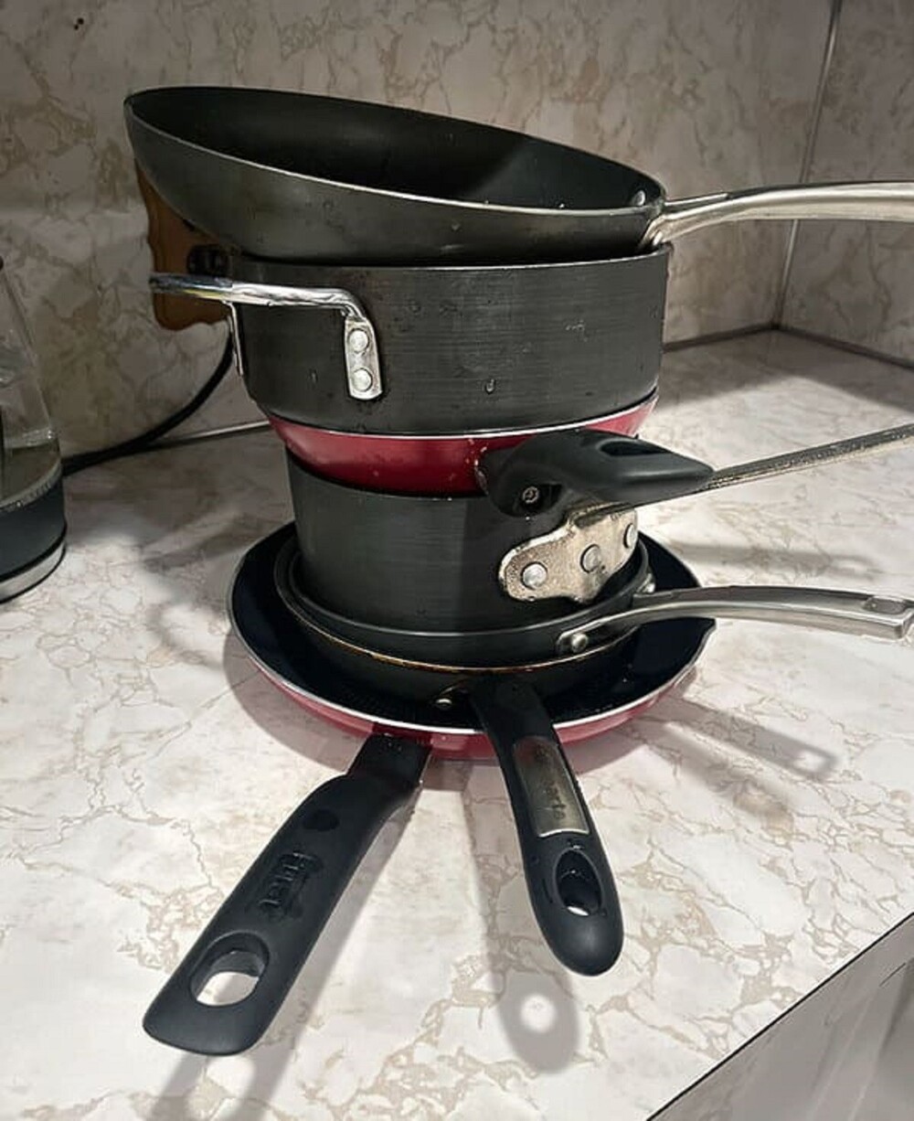 28. "Вместо того, чтобы каждый раз мыть и использовать одну и ту же сковородку, мой сосед по квартире каждый раз использует разные, пока не наберётся стопка грязных"