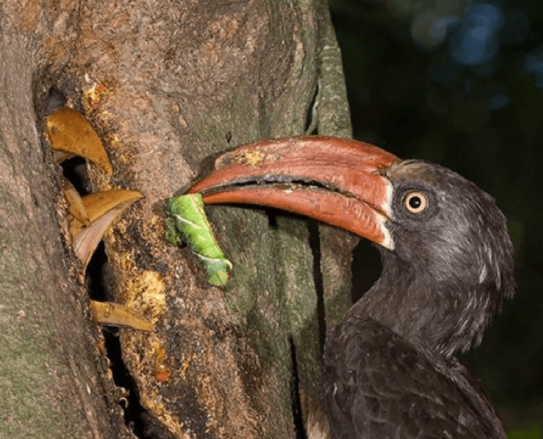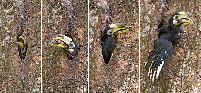 Птица-носорог могла бы стать идеальным героем для передачи «Мужское-Женское». Только представьте: их самцы нежно ухаживают за самками, усыпляя бдительность, потом заманивают их в дупла, делают им детей и замуровывают заживо! Такое заточение может длиться месяцами.