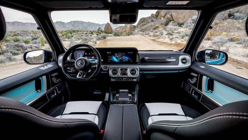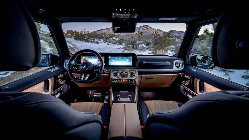 Ездовой электронике добавили умение при активации блокировок автоматически переходить во внедорожный режим. Всего их предусмотрено три: Trail, Rock и Sand. Облегчить покорение бездорожья призваны также новые функции медиасистемы с двумя 12.3-дюймовыми дисплеями. Она получила пресет Offroad Cockpit. В этом режиме на центральном экране демонстрируются внедорожные показатели наподобие положения кузова и угла поворота колёс. Плюс «Гелендваген» снабдили функцией «прозрачного капота».