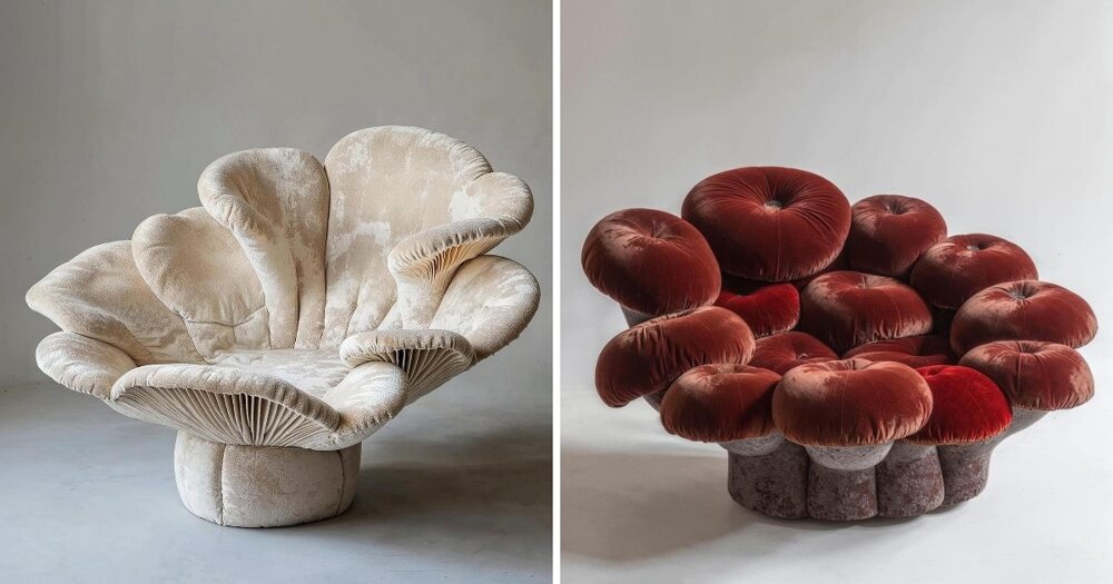Это дизайнерский проект, который был целенаправленно посвящён грибам. Наверняка, эти кресла очень удобные.