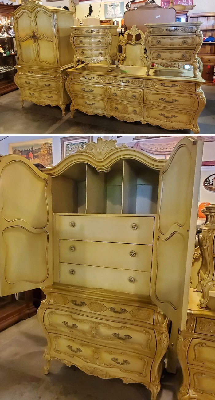 30. "Нашел этот великолепный спальный гарнитур с каркасом кровати и зеркалом в местном антикварном магазине. Напоминает мне о "Красавице и Чудовище"