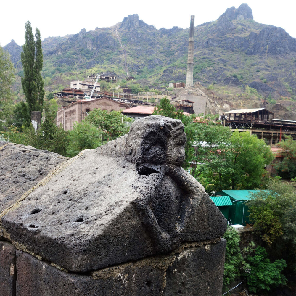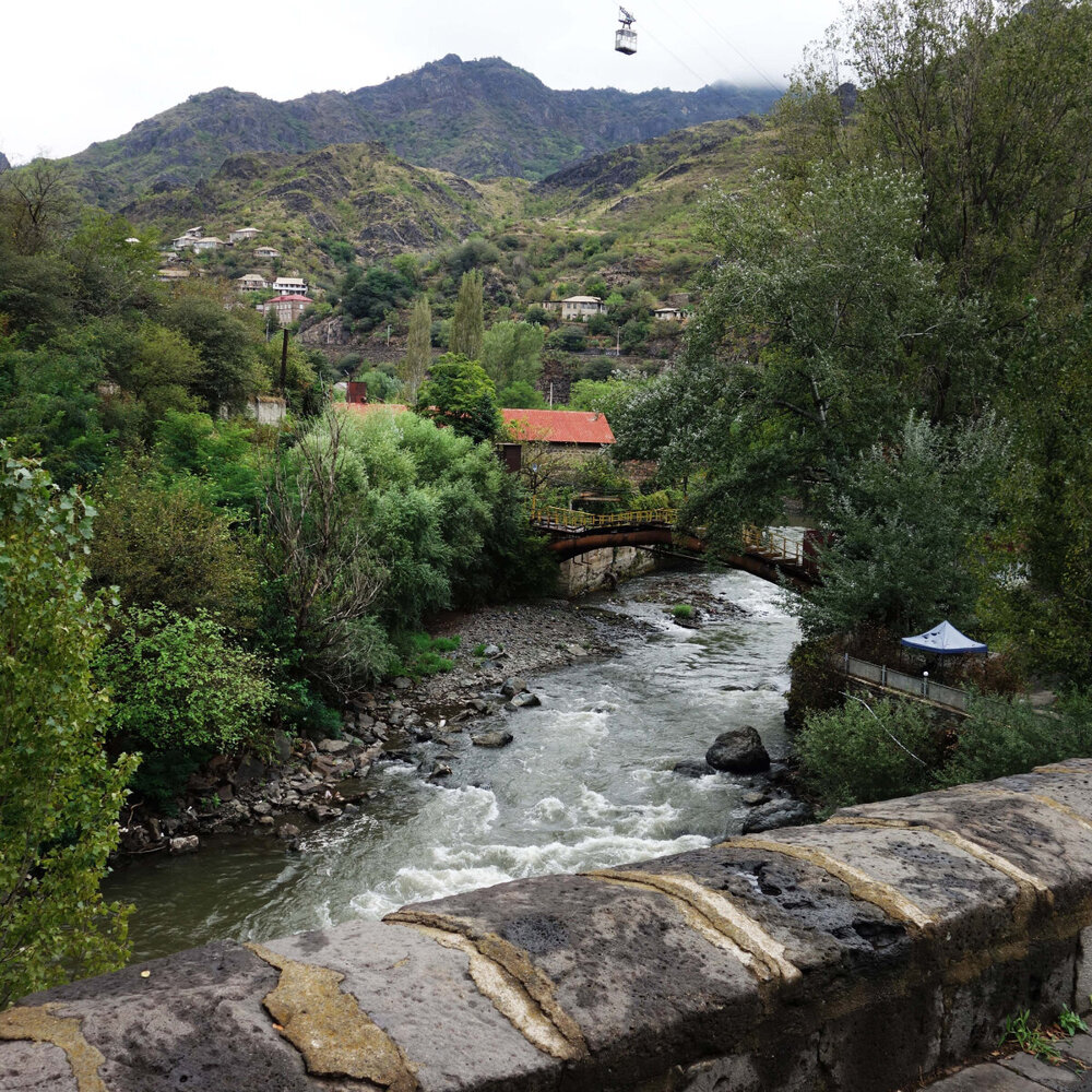 Санаинский мост находится у нижней станции старой канатки, что подтверждают зависшие над городом вагончики. Ещё лет пять назад канатка была действующей и перевозила работников местного медно-химического комбината из одной части города Алаверди в другую.