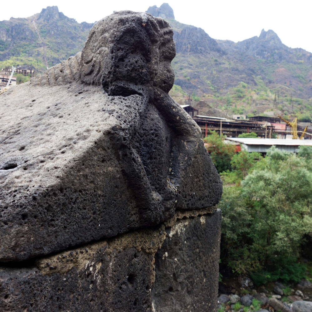 Центральная часть моста украшена фигурами диковинных зверей. Фантастическая четвёрка! С первого взгляда вообще сложно определить кто это - львы, кошки, обезьяны, инопланетяне?.. но источники утверждают, что это пантеры с герба Кюрикянов.