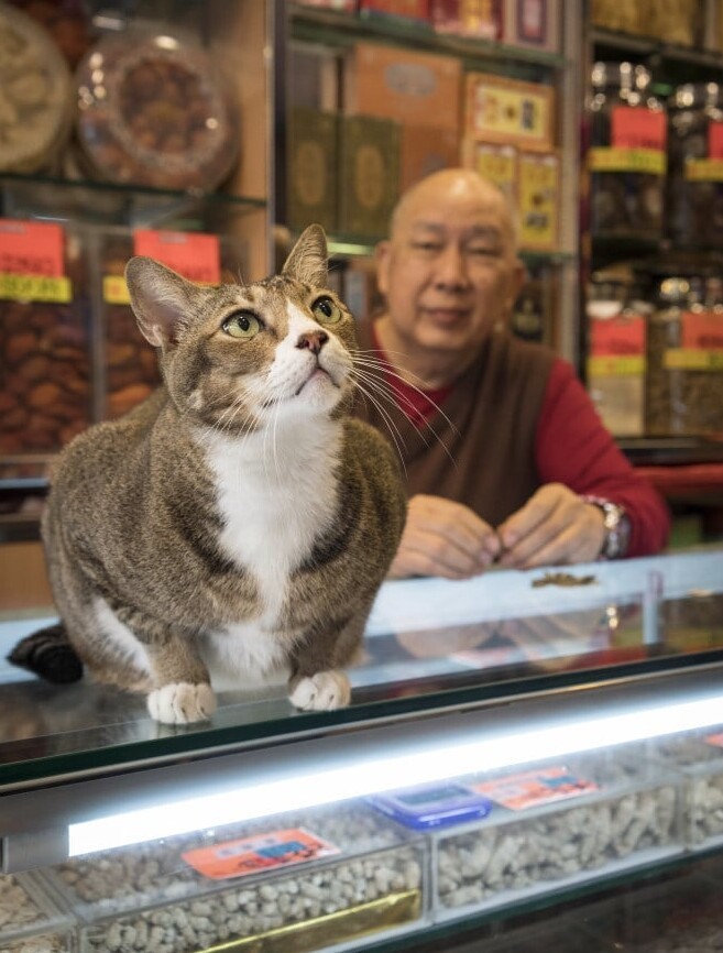 Голландский фотограф Марсель Хейнен был в восторге, обнаружив, что во многих небольших магазинах Китая есть кошки. Он сделал серию фотографий, которые стали вирусными, и даже опубликовал книгу об этом.