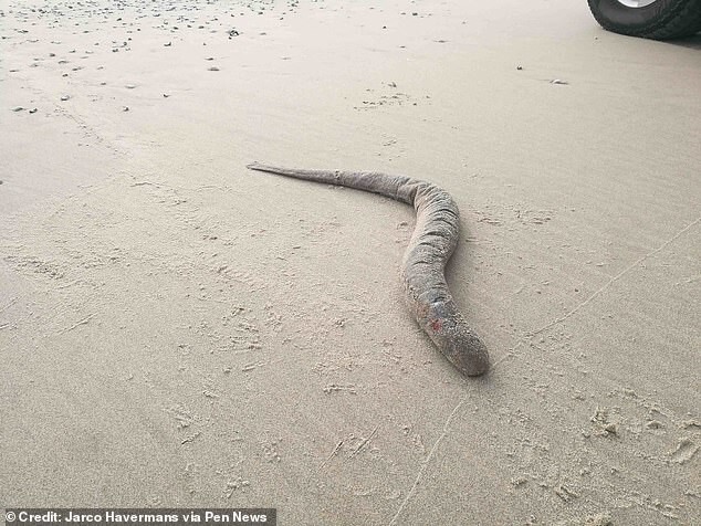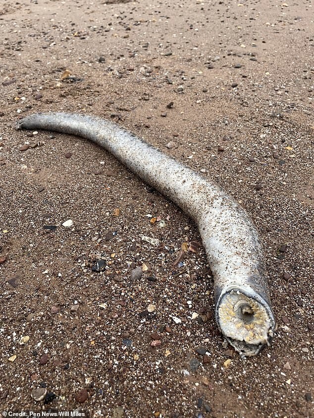 «Оно было похоже на огромную пиявку с присоской, полной острых, направленных внутрь зубов, — написал Майлз. — Длина около 80 см, чуть меньше роста двухлетнего ребенка. Я был очень удивлен. Я никогда раньше не видел, чтобы на берег вымывало такое, и не ожидал увидеть».