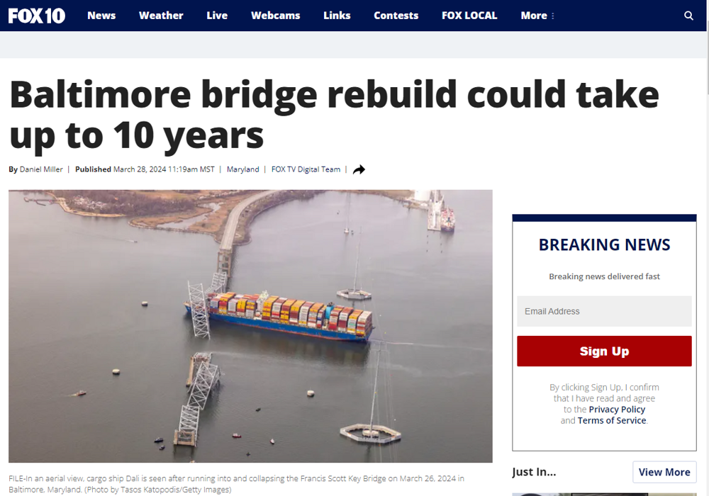 Помните, на этой неделе в США мост упал, благодаря стараниям контейнеровоза? Так вот, тут продолжение истории подъехало.