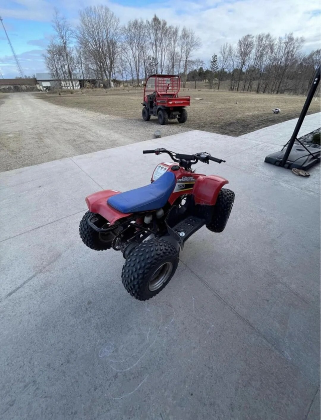 Сначала чертовски сложно понять, как детский квадроцикл левитирует, но если увидеть под ним серое ведро, всё становится на свои места.