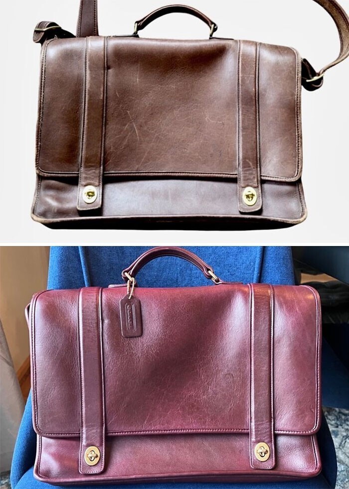 2. "Няня нашего сына получила степень магистра, и мы хотели подарить ей что-то особенное. Моя жена нашла этот портфель от Coach 80-х годов, и я сделал полную реставрацию"