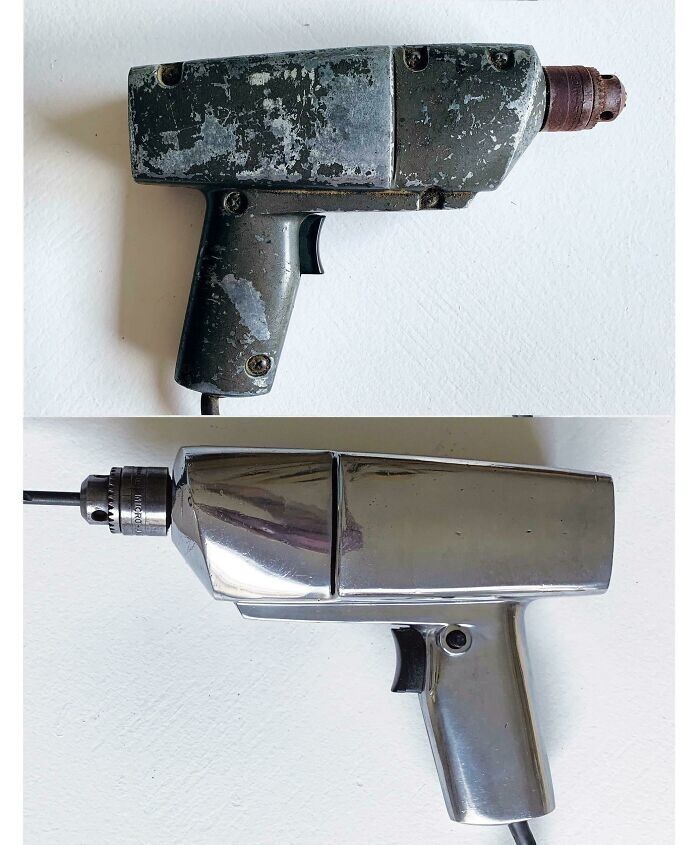 26. "Электродрель Montgomery Ward 1970-х годов. До и после. Все еще отлично работает"