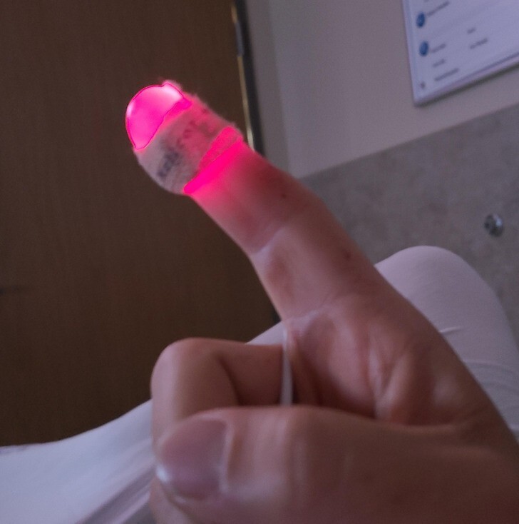 27. "Я в больнице ночью, и из-за пульсоксиметра у меня рука как у Инопланетянина из одноименного фильма"