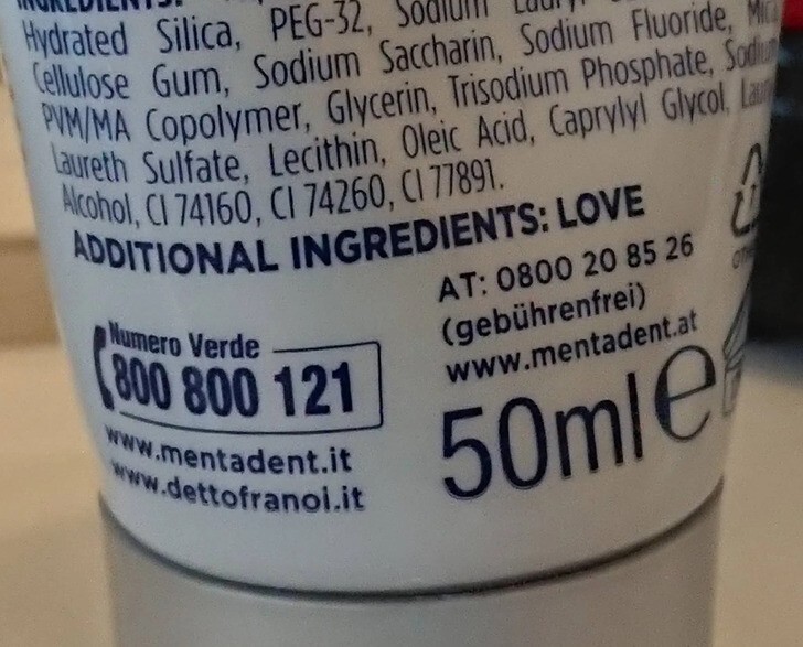 29. "У моей зубной пасты указан дополнительный ингредиент: любовь"