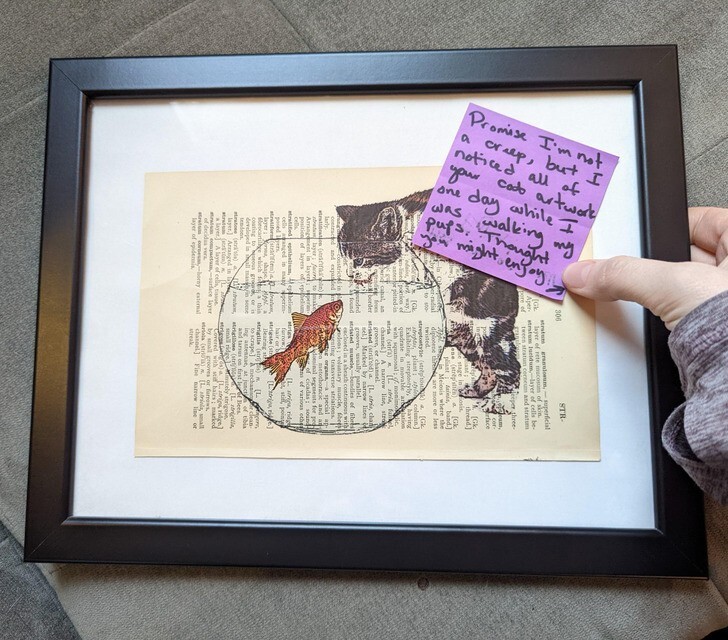 15. "Незнакомец заметил, что у нас с женой есть стена картин с кошками, и подбросил нам новую"