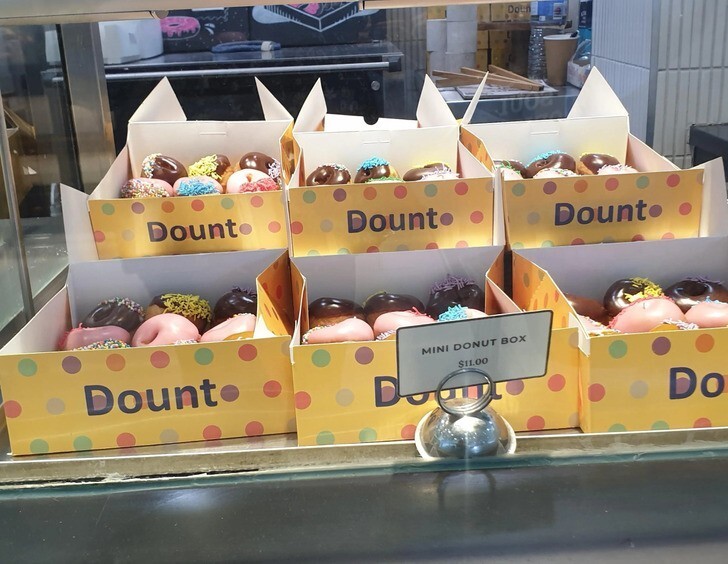 25. "Местная кондитерская неправильно написала слово "пончик" на коробках"