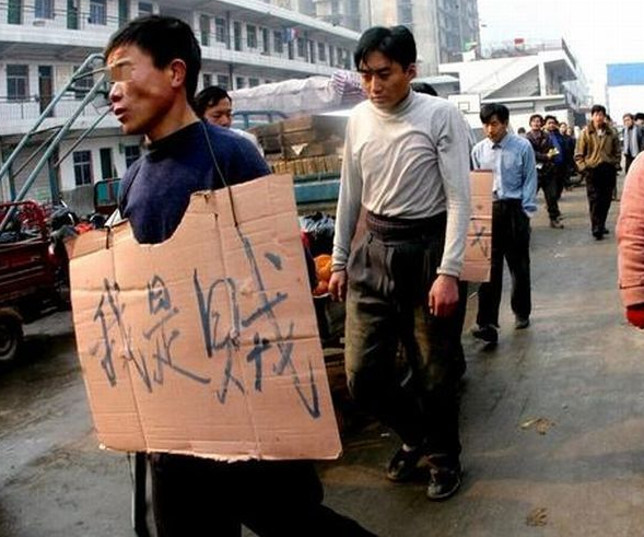 В Китае все еще практикуется публичный позор. Чиновникам - до тюрьмы, а мелких позорит народ сам, иногад и без полиции. Ну или бьет.