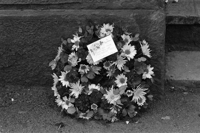 И тут, на Фэрвью-роуд, прямо по улице, не прячась и не таясь, на Майкла пошла его мать Дороти. Она шла, говоря с ним не спокойно, а даже как-то грозно, чтобы он отдал оружие и сдался. Она была в гневе от того, что любимый сыночек поджёг их дом и учинил такие беспорядки. Райан, не дрогнув, выстрелил ей в ногу, а когда она упала - подошёл и в упор расстрелял собственную мать.