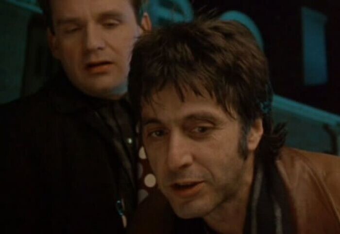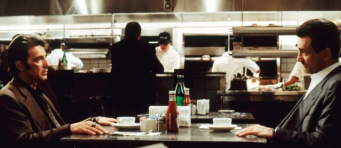 Во втором «Крестном» встретились два самых серьезных италоамериканца в истории кино: Пачино и Роберт Де Ниро. Правда, у них не было общих сцен, потому что Де Ниро играл Вито Корлеоне, отца героя Пачино, в молодости. Поработать в дуэте у них получилось лишь 20 лет спустя в «Схватке» Майкла Манна, и это была действительно схватка: не только полицейского и гангстера, которых они играли, но и самих актеров, давних приятелей-конкурентов.