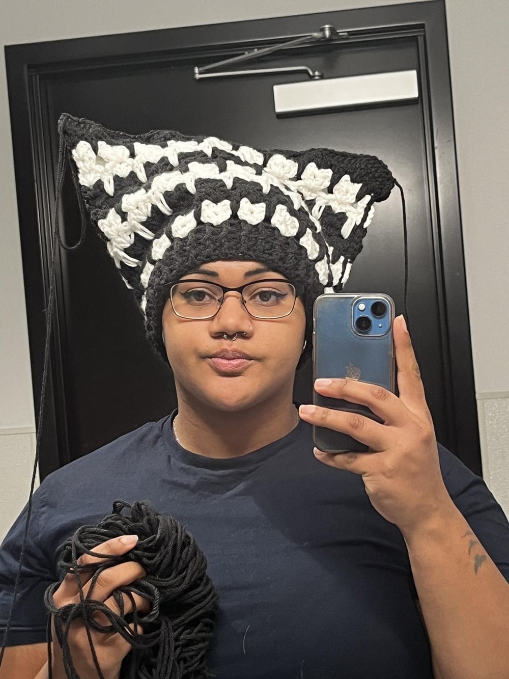 Шапка-бини с кошачьими ушками. Похоже?