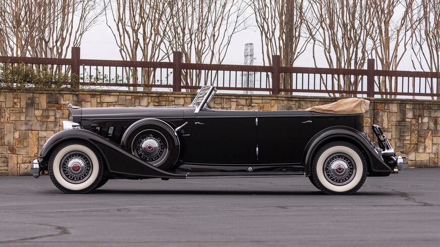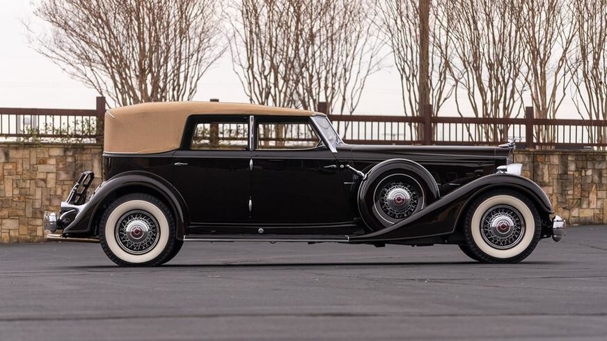 На продажу выставили один из самых элегантных классических автомобилей довоенной эпохи, да ещё с заказным кузовом ателье Dietrich. Выпускавшийся с 1933 по 1939 год флагманский 12-цилиндровый Packard Twelve (в линейке марки тогда присутствовали также 8-, а позже и 6-цилиндровые модели) нельзя назвать совсем уж мелкосерийным, поскольку их было собрано свыше 35 тысяч, значительная часть которых сохранилась по сей день.
