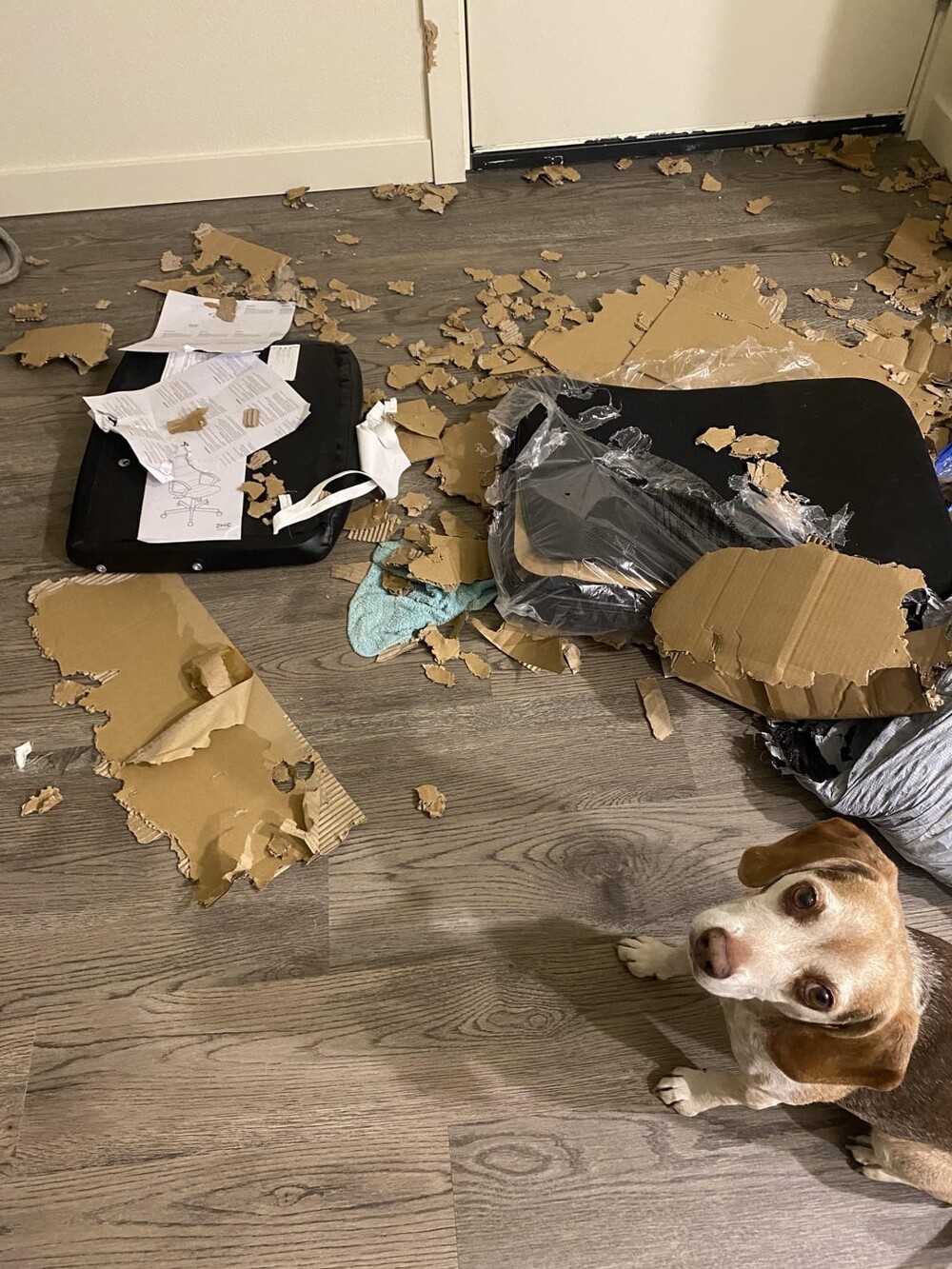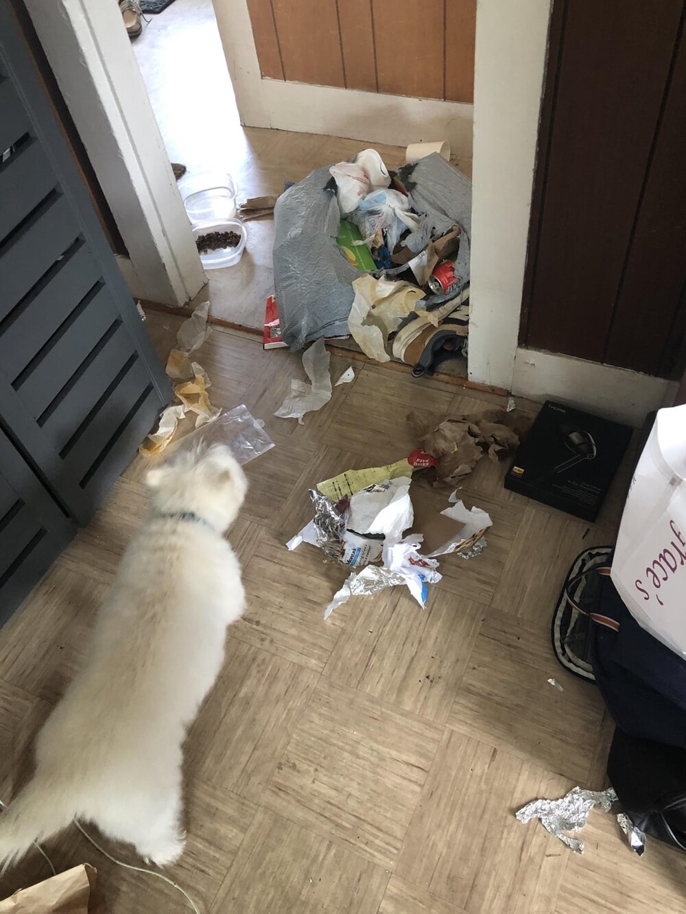 5. Я завязала мешок с мусором, побежала за более прочным пакетом, затем услышала громкий хлопок