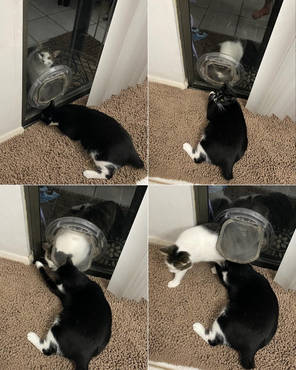 3. Ему нравится лежать перед дверью для кошек и кусать своих братьев и сестер, когда они пытаются пройти через нее