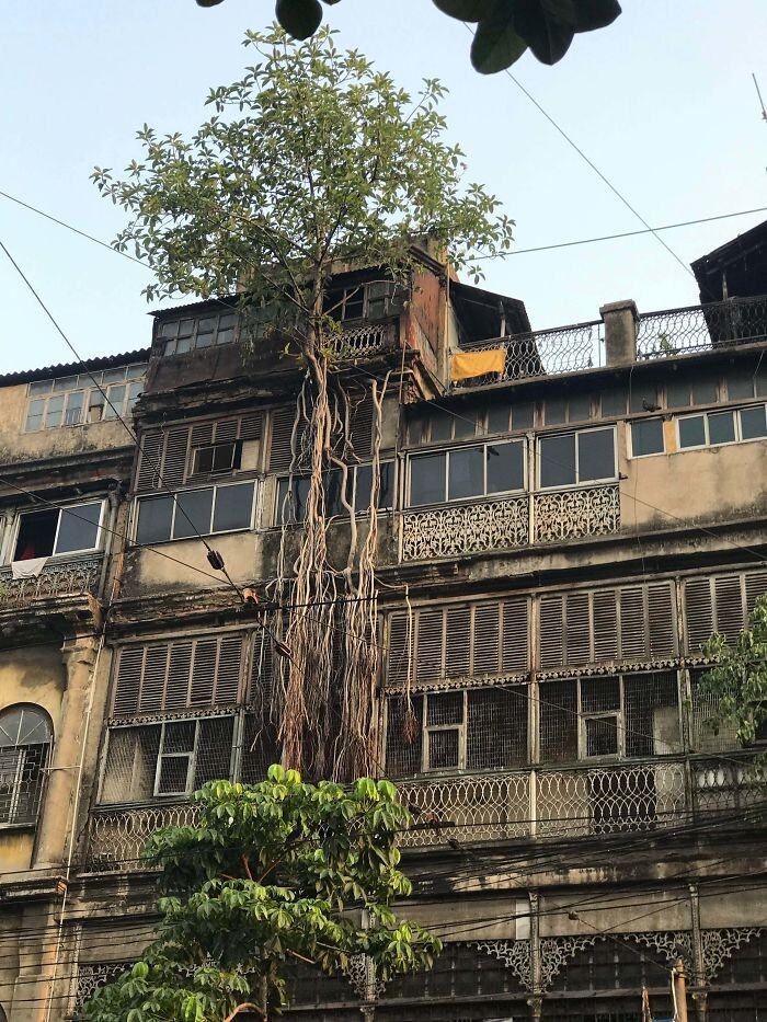14. Священное дерево восстанавливает оккупированное пятиэтажное здание в старом районе центра Калькутты