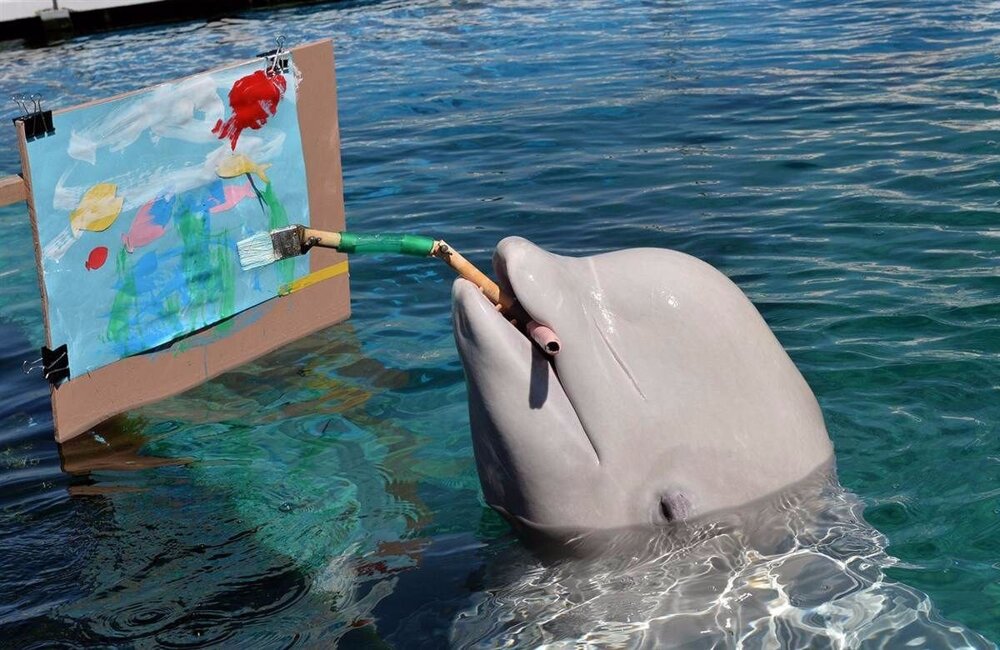 Уже давно существует практика, где дельфинам дают порисовать в океанариумах. Хоть эти рисунки и трудно расшифровать, но животные стараются и явно вкладывают какие-то смыслы в творчество.