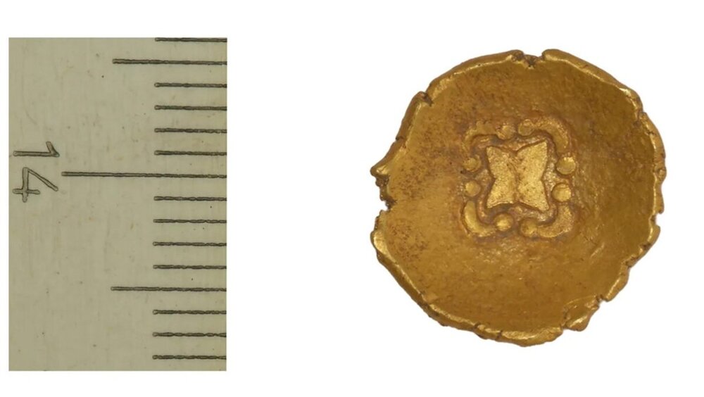 Радужный кубок возрастом 2000 лет был найден на берегу реки в Германии. Золотая монета в форме чашки содержит редкий элемент дизайна: четырехконечную звезду, окруженную арками. Это один из трех известных радужных кубков, содержащих этот мотив, и относящихся к легенде о том, что эти кубки созданы из капель золота, падавших с края радуги.