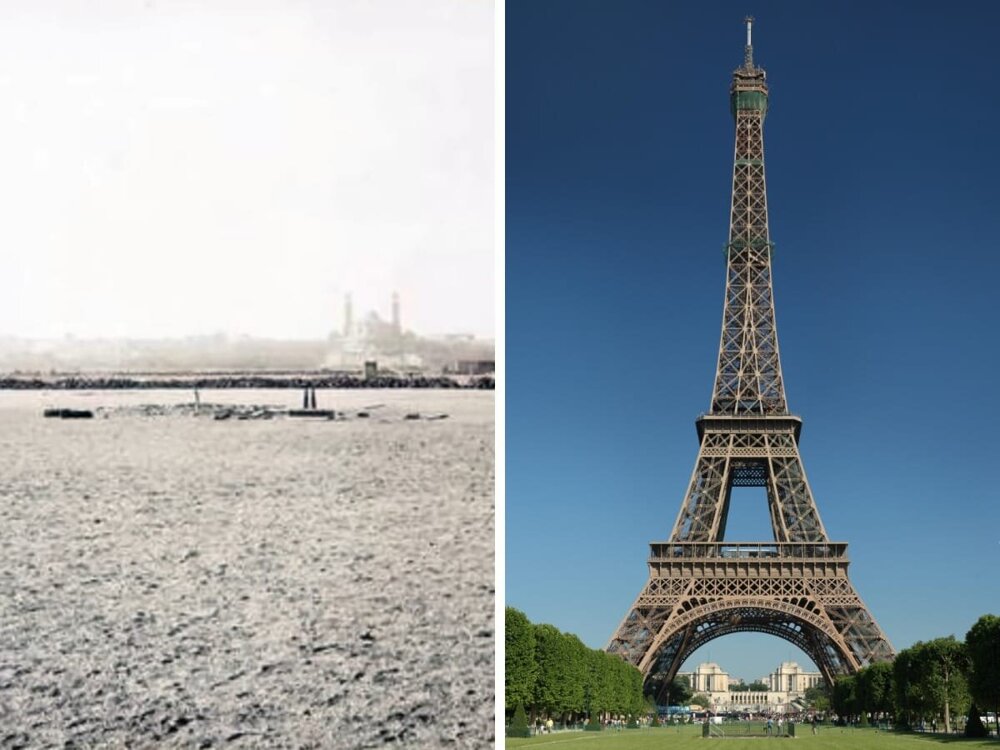 2. Марсово поле в Париже до и после строительства Эйфелевой башни