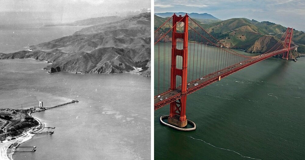 6. Область залива Сан-Франциско до и после строительства моста Золотые Ворота