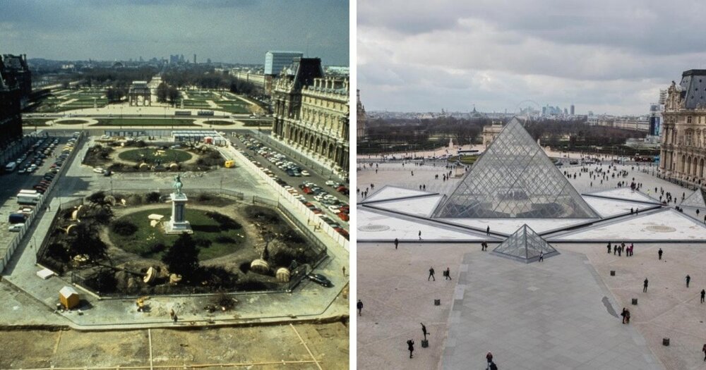 1. Музей Лувра в Париже до и после строительства пирамиды Лувра во дворе Наполеона