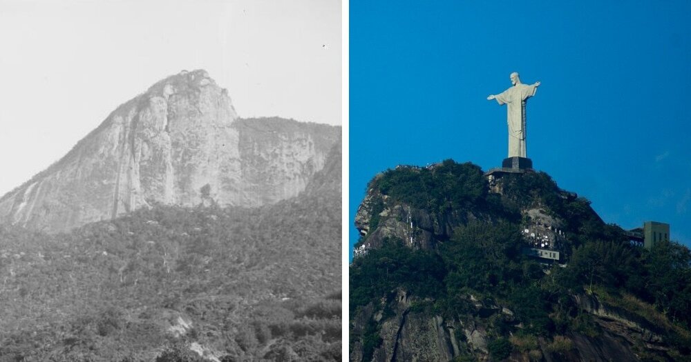 5. Гора Корковаду в Рио-де-Жанейро до и после строительства статуи Христа-Искупителя
