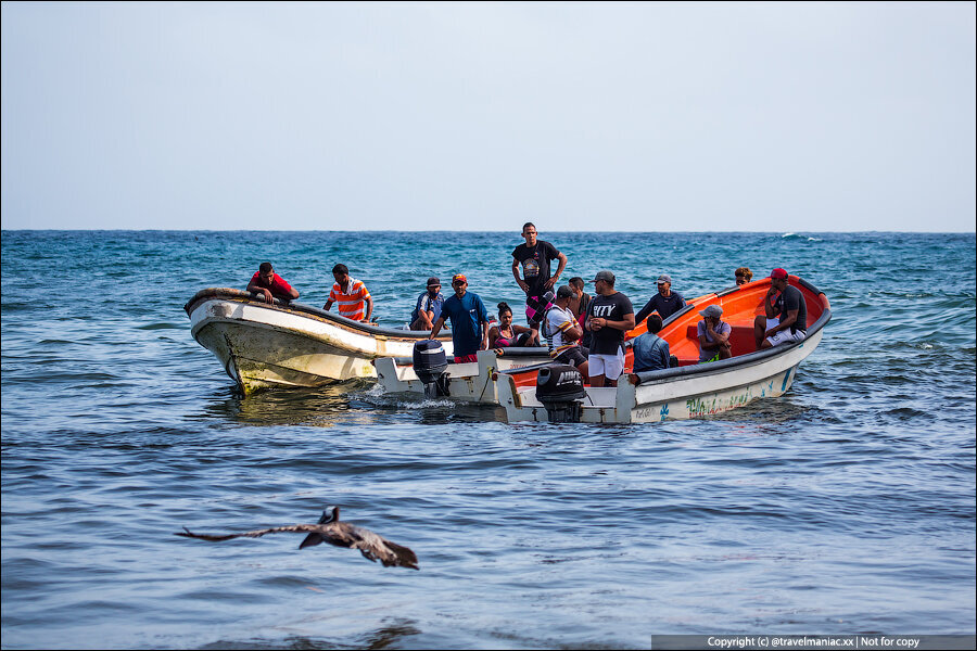 При этом важно понимать, что солнце на Карибах — это совсем не то солнце, которое мы привыкли ощущать где-нибудь даже в Сочи в самый жаркий день. Здесь оно просто нестерпимое и выжигающее, так что местным рыбакам вообще не позавидуешь. Ведь лодки у них без навесов и все спасение от солнца — это кепки или намотанные на голову футболки.