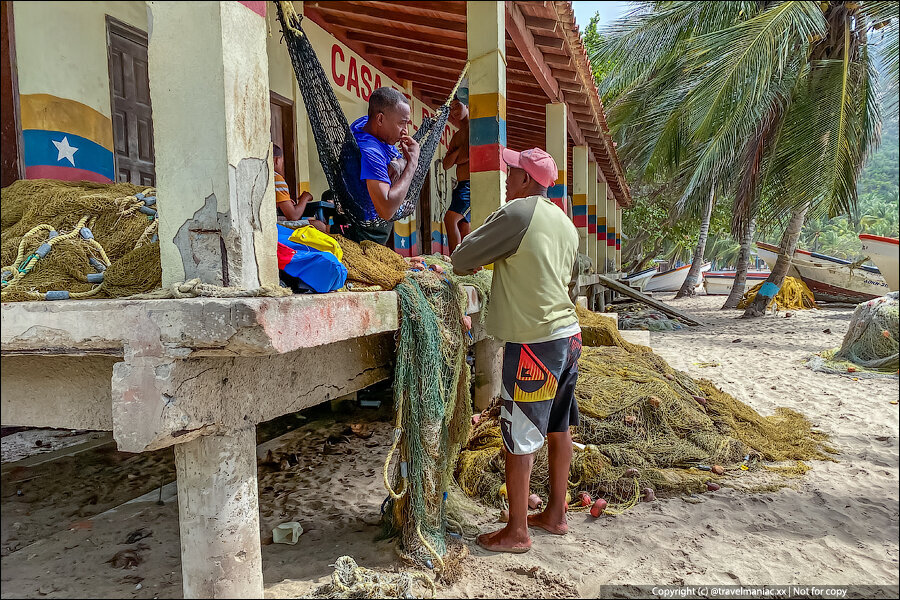 Житуха у них там — я вам скажу. Полный отрыв от цивилизации, невозможность попасть в поселки, кроме как на лодках по морю, отсутствие каких-либо современных коммуникаций (электричество, связь интернет). Все что есть у этих людей — их работа: целыми днями они под палящим карибским солнцем они расставляют рыболовные сети и выбирают их затем, полные рыбы.