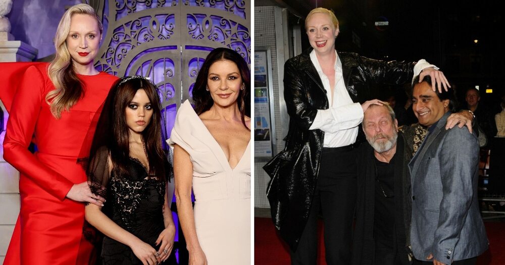 Видно, что и на фоне мужчин и на фоне Дженны Ортеги (155 см) актриса выглядит очень высокой.