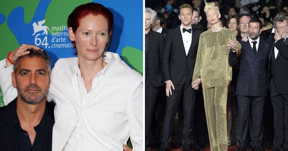 Актриса не стесняется ещё больше удлинять свой образ за счёт нарядов и причёски. На фотографии 2007 года Джордж Клуни в шутку присел рядом со своей высокой коллегой.
