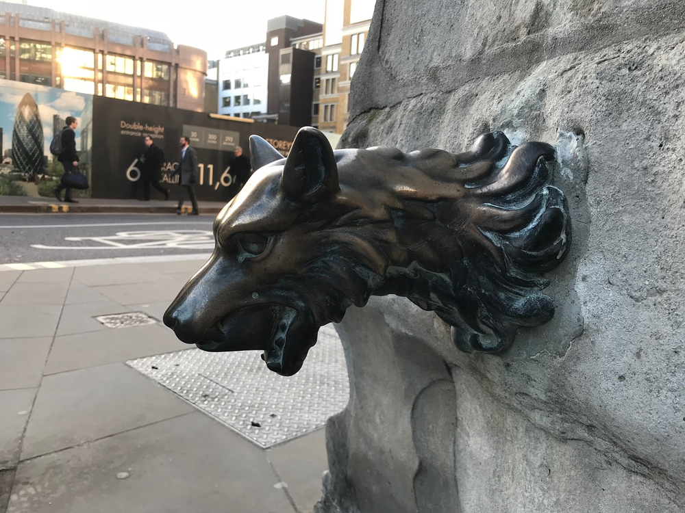Латунный носик в форме головы волка тоже имеет интересную символическую историю. На этом месте был застрелен последний волк в окрестностях лондонского Сити.