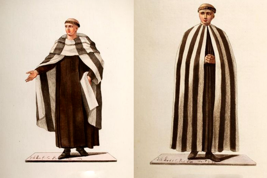Но в общественном сознании неграмотных средневековых жителей это как-то преломилось. И родилось убеждение — черно-белая полоска запрещена Богом. Причем разноцветные полосатые одежды носить можно. Два предмета черного и белого цветов — тоже. Так и одето большинство католических монашеских орденов.